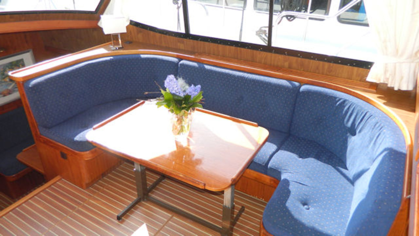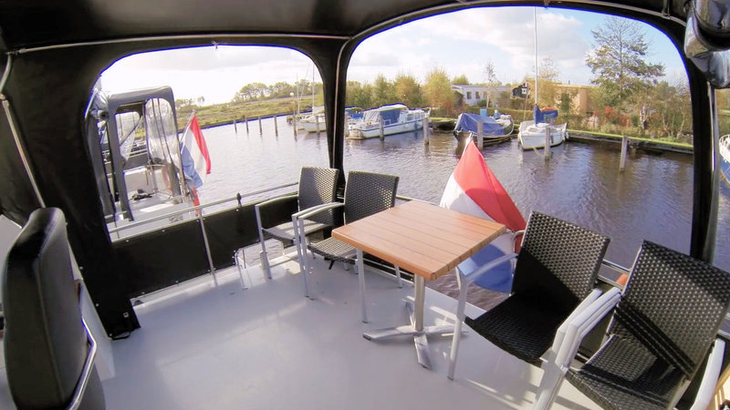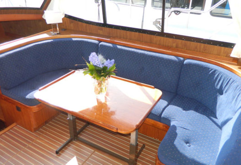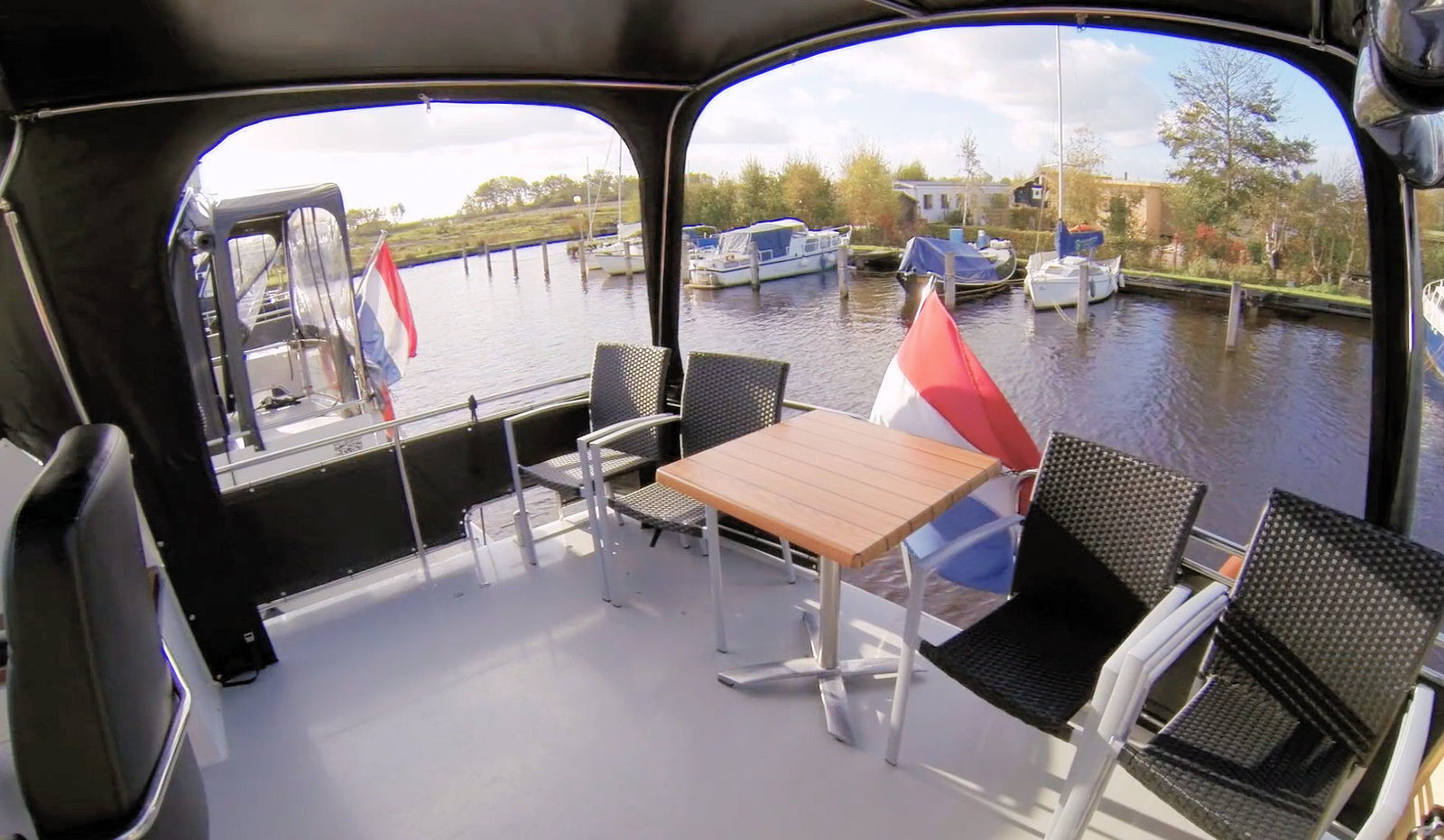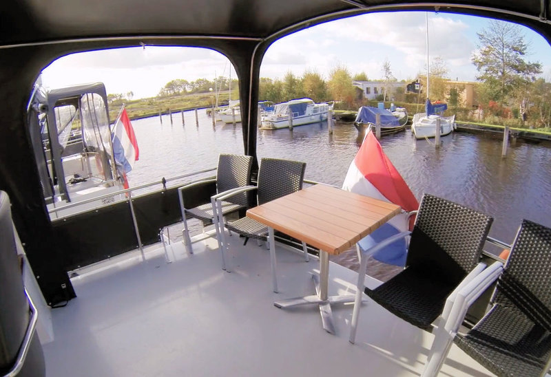 Dadurch haben Sie und Ihre Crew noch mehr Komfort und Raum. Abends sitzen Sie gemeinsam gemütlich auf dem Achterdeck, um zu Abend zu essen oder bei Genuss eines guten Glas Weins die Aussicht zu genießen. Wenn es regnet, sitzen Sie gemütlich warm und geschützt an Deck.