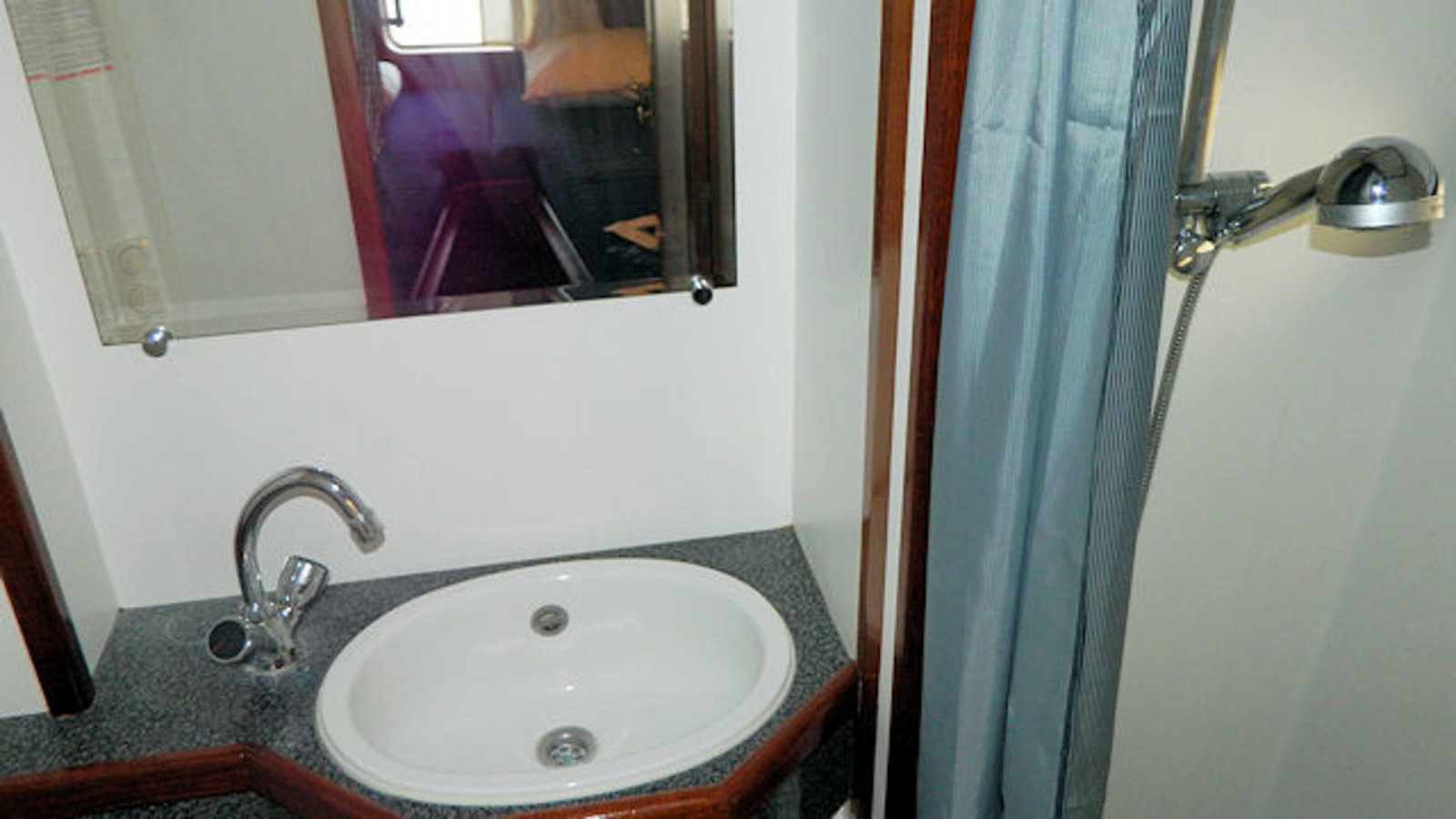 Die Reina verfügt über 3 Doppelkabinen, die alle mit Dusche und WC ausgestattet sind.