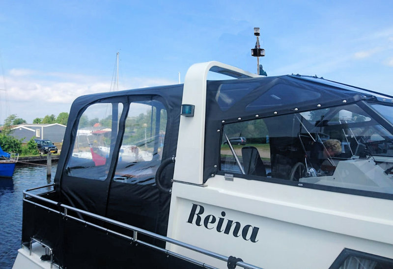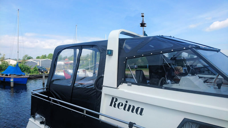 Das Boot wird mit einem auf allen Seiten vollständig abschließbaren Zelt über dem Achterdeck vermietet.