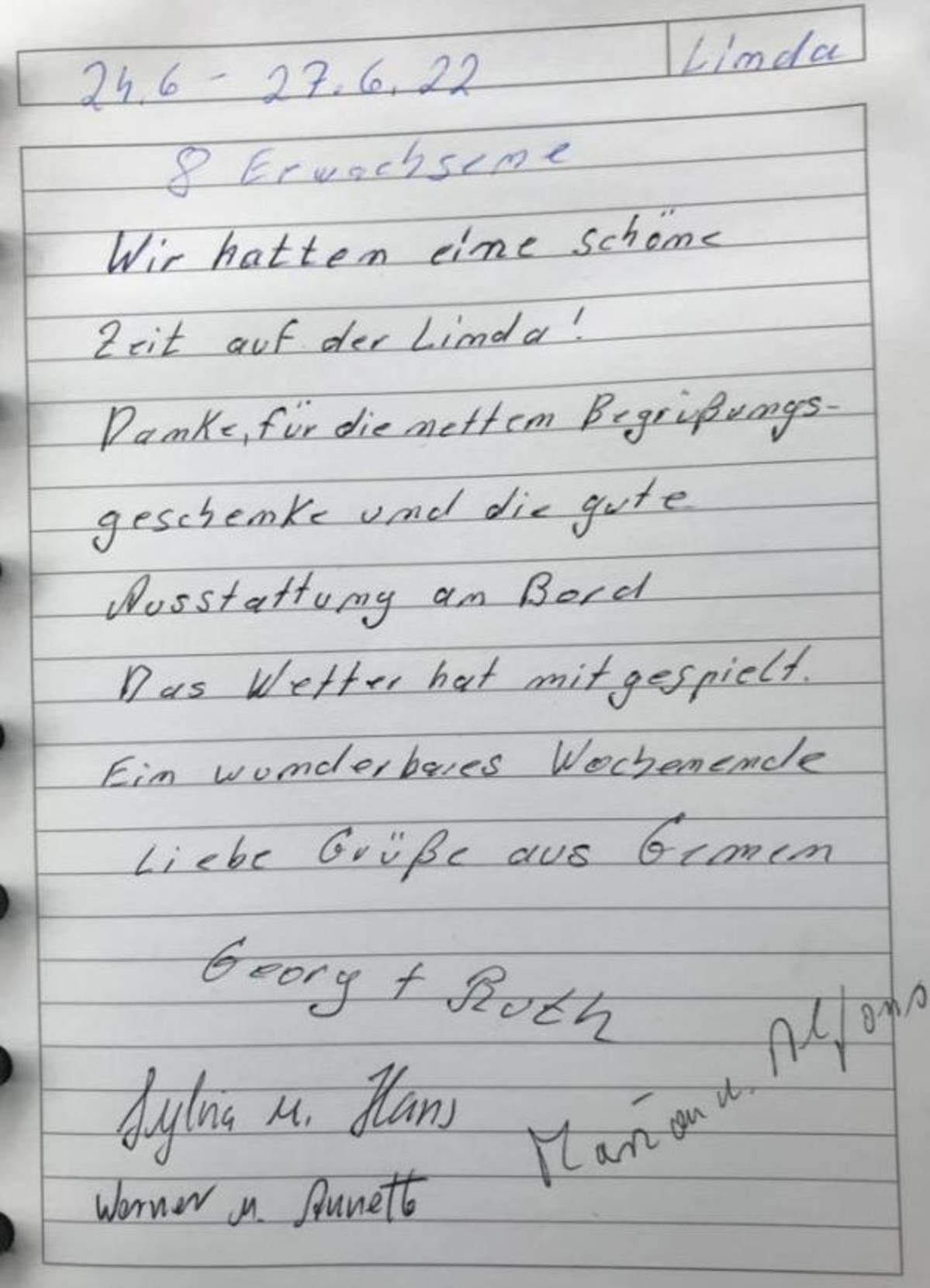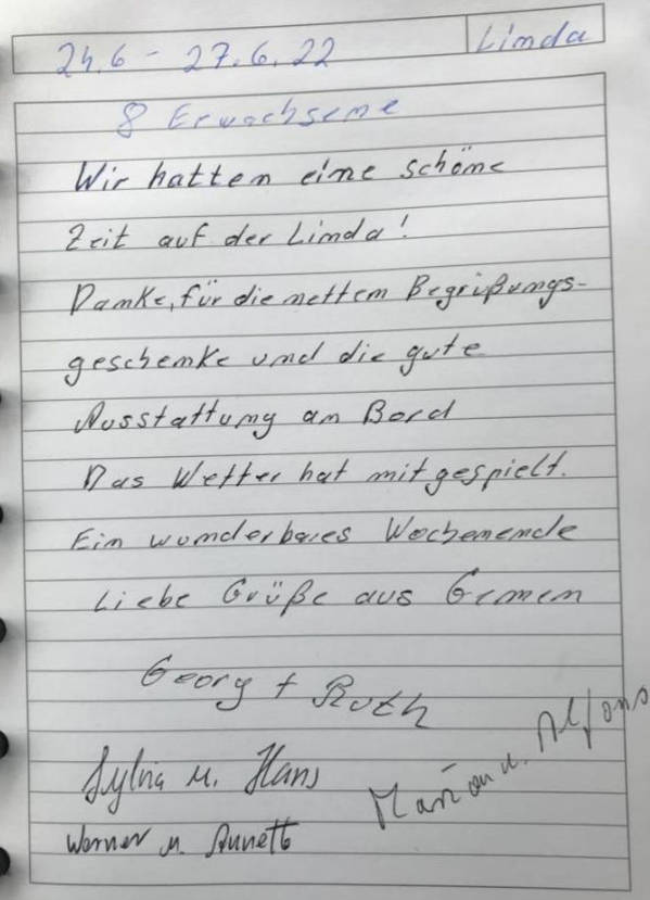 Danke für die netten Begrüßungsgeschenke und die gute Ausstattung an Bord.