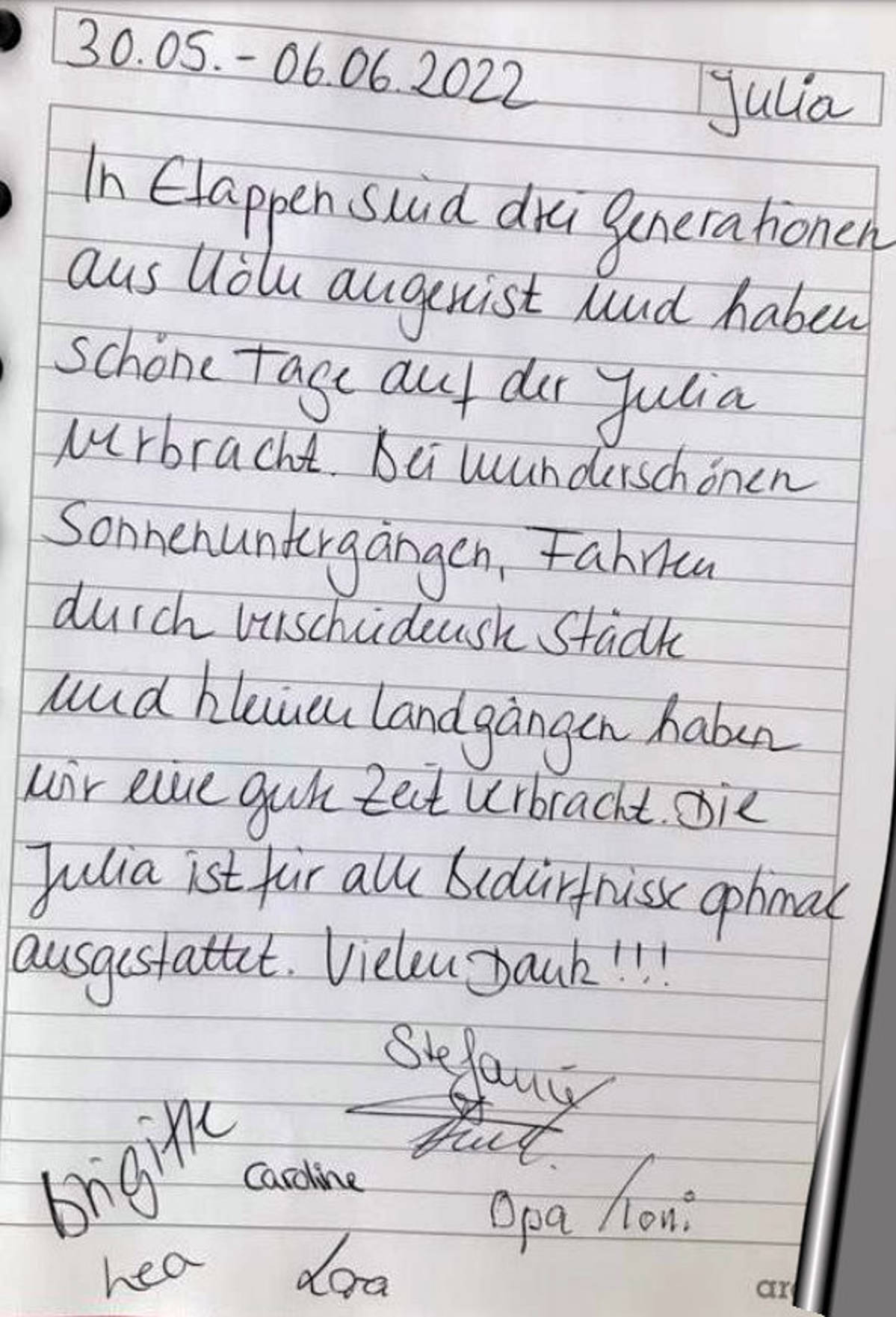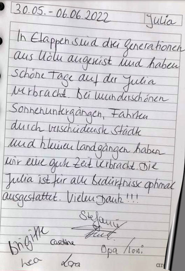 In Etappen sind drei Generationen aus Köln angereist und haben schöne Tage auf der Julia verbracht.