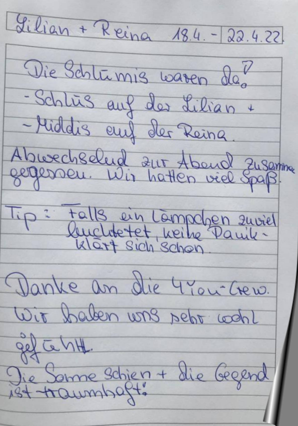 Abwechselnd zur Abend zusammen gegessen. Wir hatten viel Spaß.