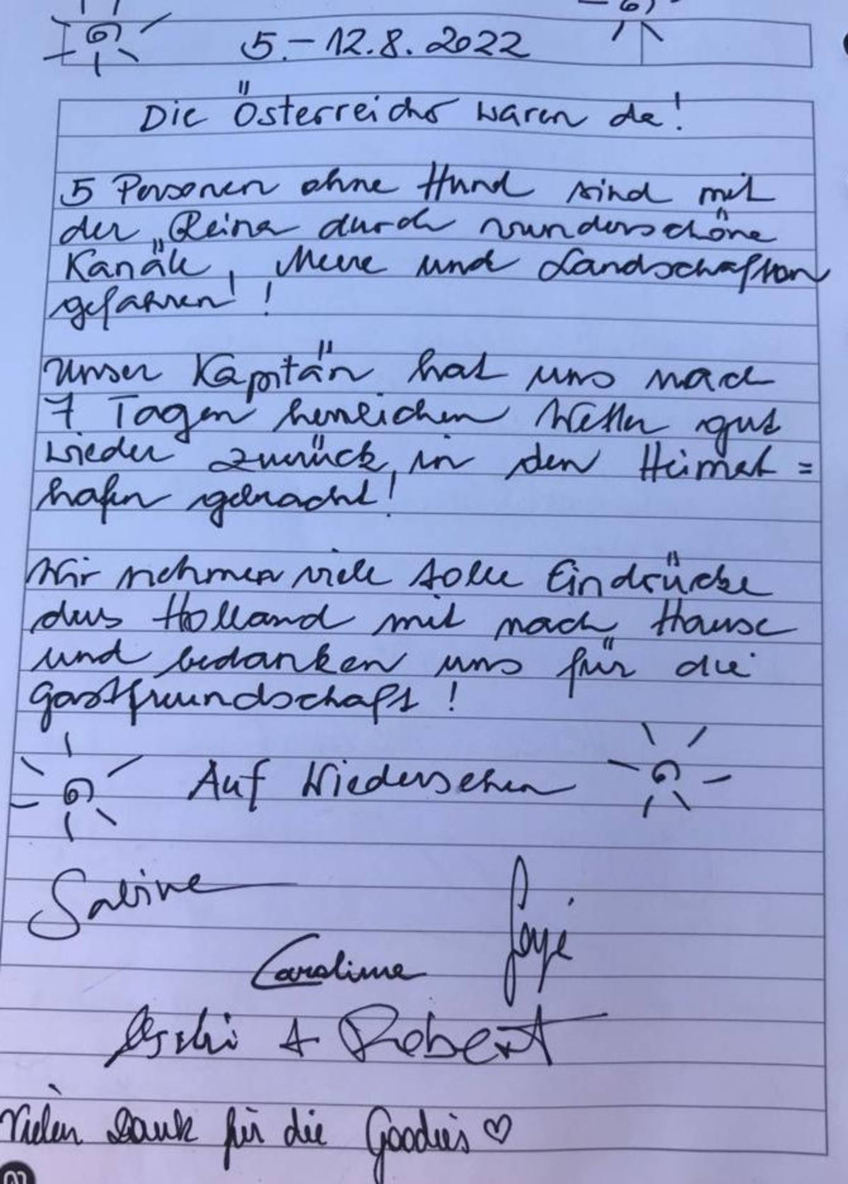 5 Personen ohne Hund sind mit der Reina durch wunderschöne Kanäle, Meere und Landschaften gefahren!