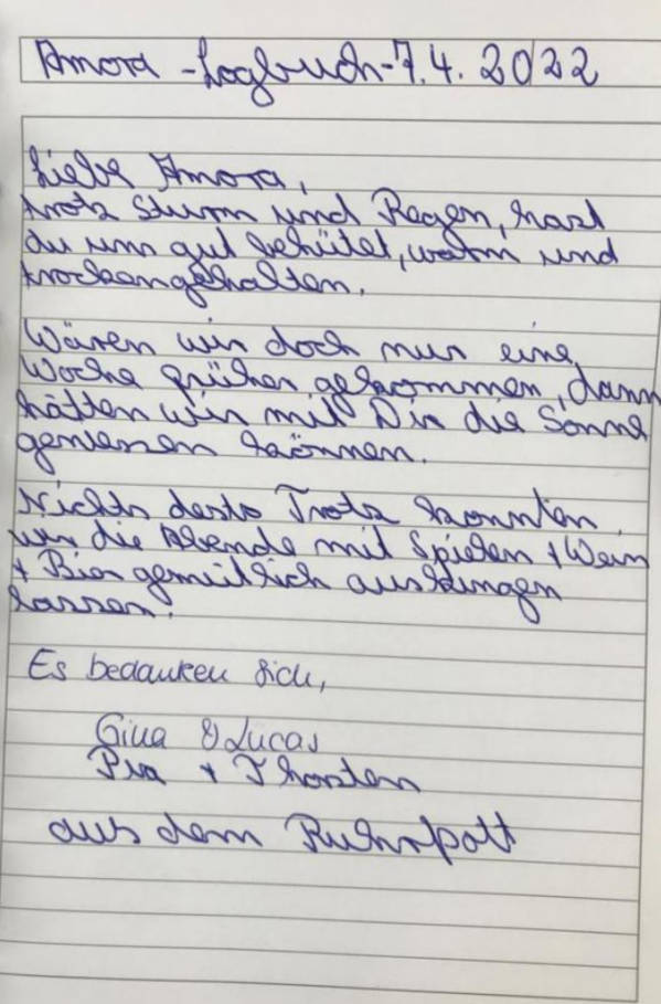 trotz Sturm und Regen, hast du uns gut behütet, warm und trockengehalten.