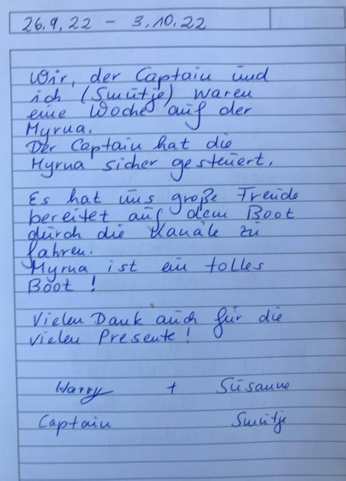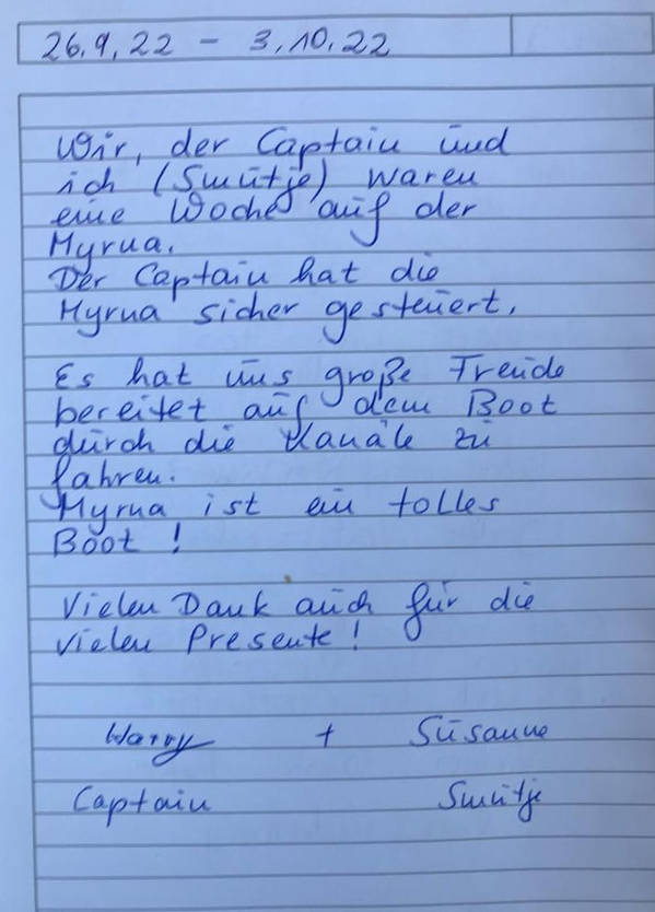 Wir, der Capitain und ich ( Smutje ) waren eine Woche auf der Myrna.