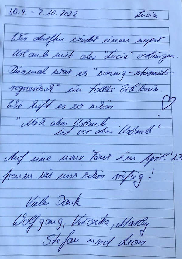 Wir durften wieder einen super Urlaub mit der "Lucia" verbringen. Diesmal war es "sonnig - stürmisch- regnerisch" ein tolles Erlebnis.