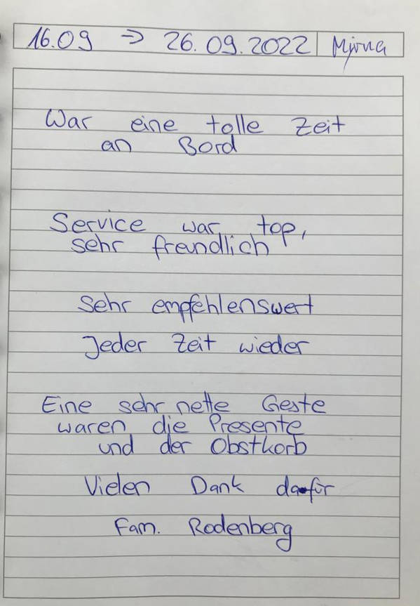 Urlaub an Bord der Yacht Myrna