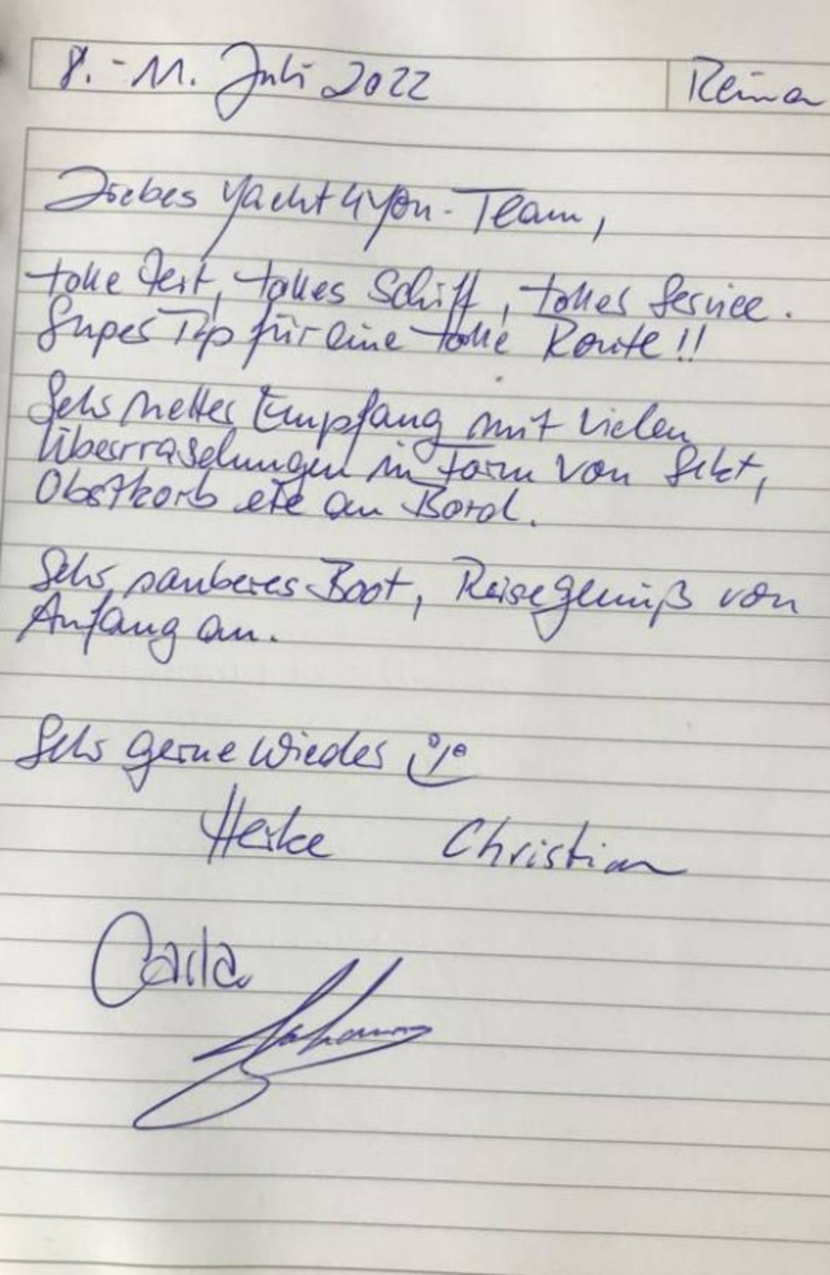tolle Zeit, tolles Schiff, toller Service.