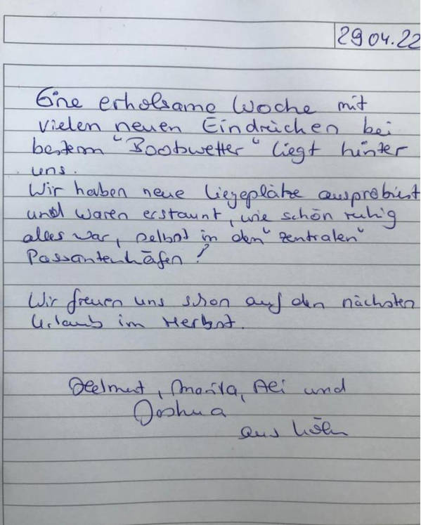 Wir haben neue Liegeplätze ausprobiert und waren erstaunt, wie schön ruhig alles war, selbst in den „zentralen“ Passantenhäfen!