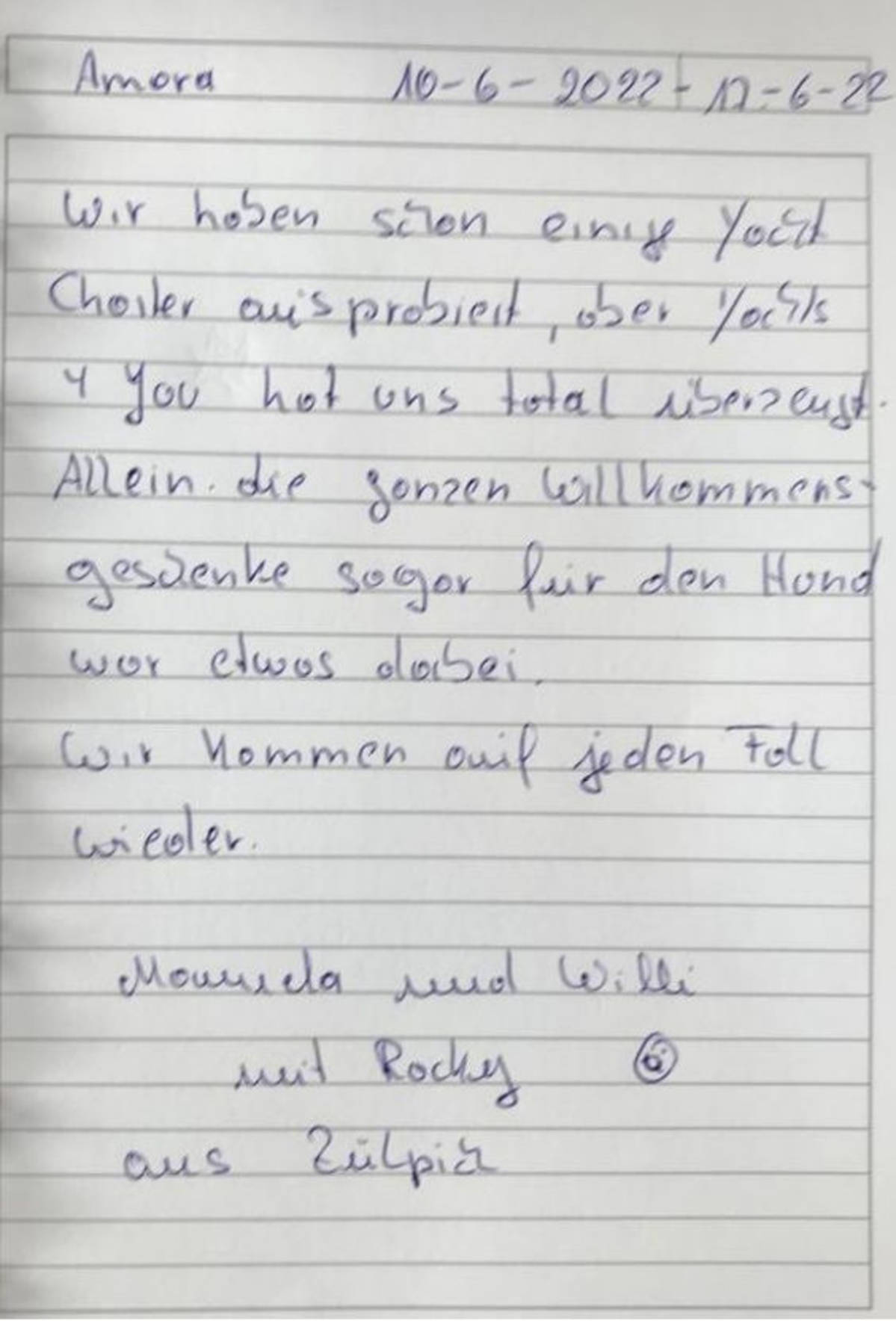 Allein die ganzen Willkommensgeschenke sogar für den Hund war etwas dabei.