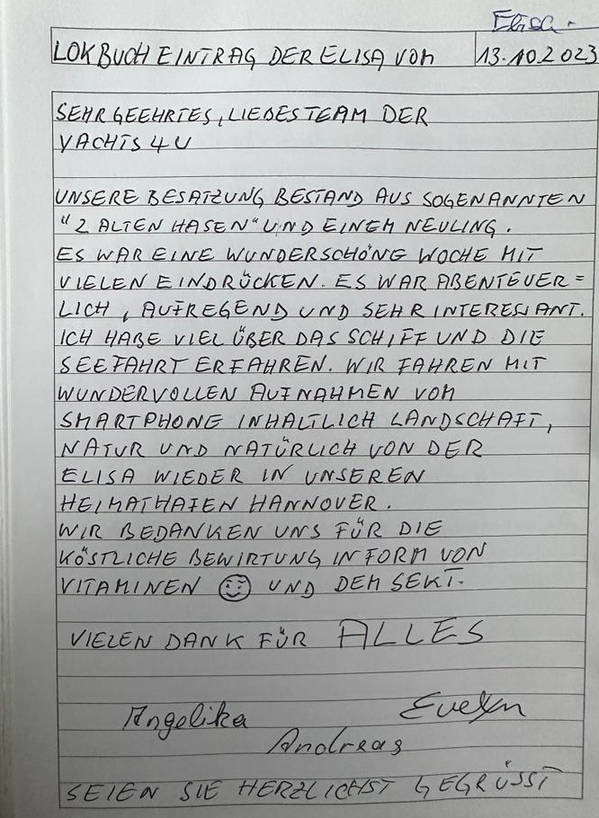 Lesen Sie einen weiteren Bewertung über einen Bootsurlaub mit dem Boot Elisa.