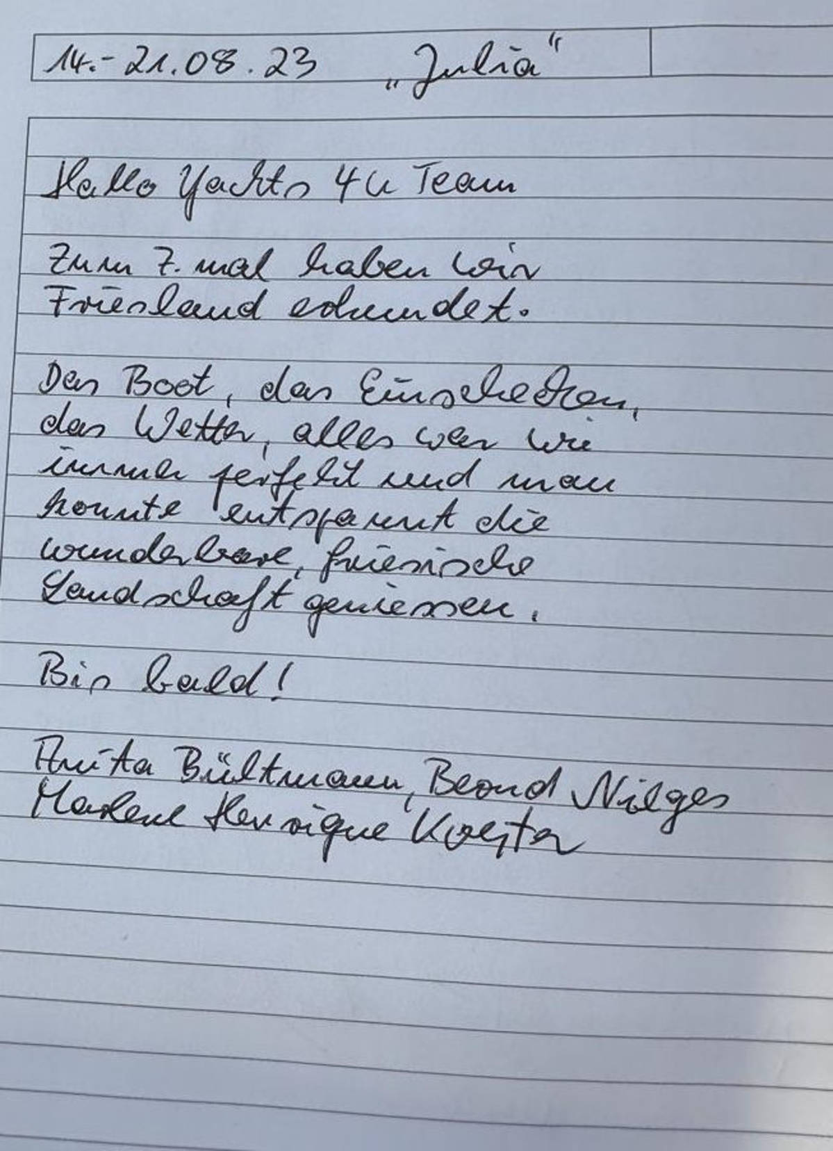 Hallo Yachts 4 U Team