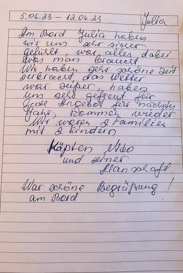 Am Bord Julia haben wir uns sehr sicher gefühlt, war alles dabei was man braucht