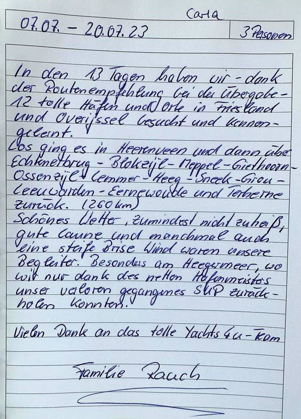 Lesen Sie einen weiteren Bewertung über einen Bootsurlaub mit dem Boot Carla.