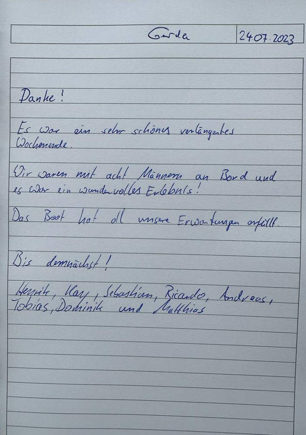 Lesen Sie einen weiteren Bewertung über einen Bootsurlaub mit dem Boot Gerda.