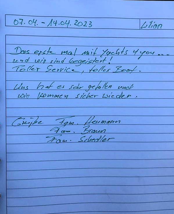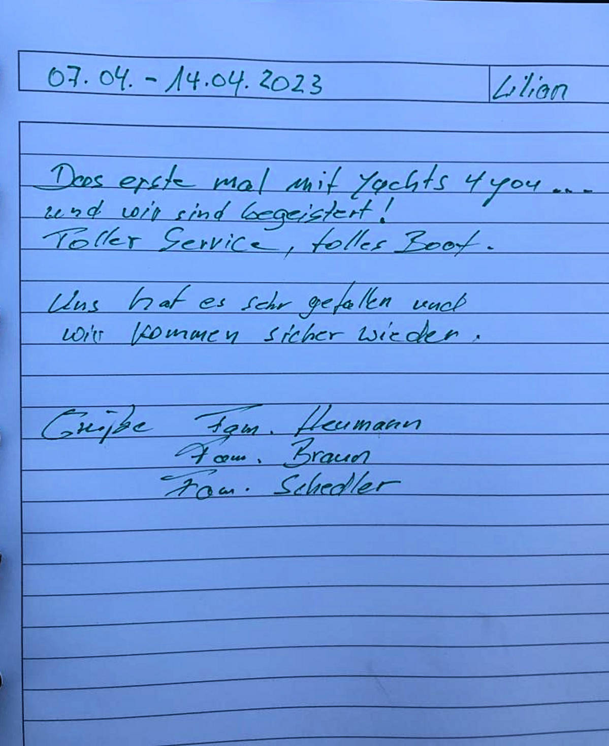 Lesen Sie einen weiteren Bewertung über einen Bootsurlaub mit dem Boot Lilian.