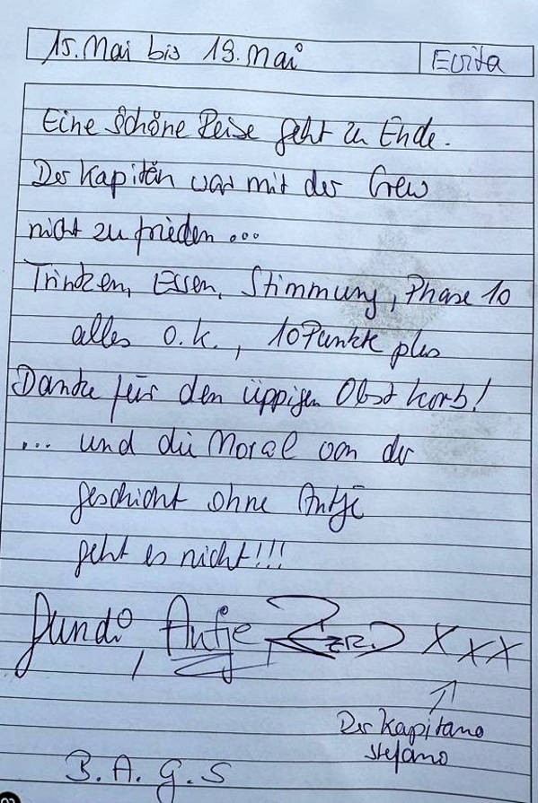 Der Kapitän war mit der Crew nicht zufrieden.
