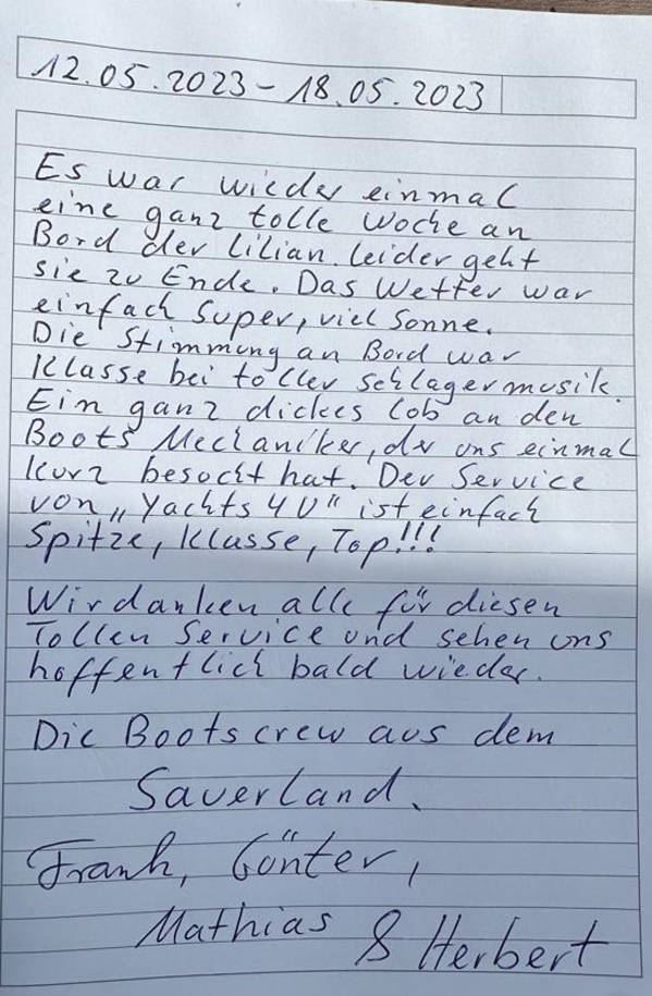Der Service von „ Yachts 4 U „ ist einfach Spitze, Klasse, Top!!!