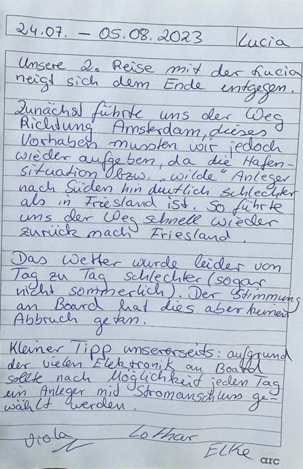 Unsere 2.Reise mit der Lucia neigt sich dem Ende entgegen.