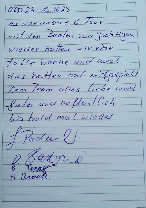 Es war unsere 6.Tour mit den Booten von Y4you. Wieder hatten wir eine tolle Woche und auch das Wetter hat mitgespielt.