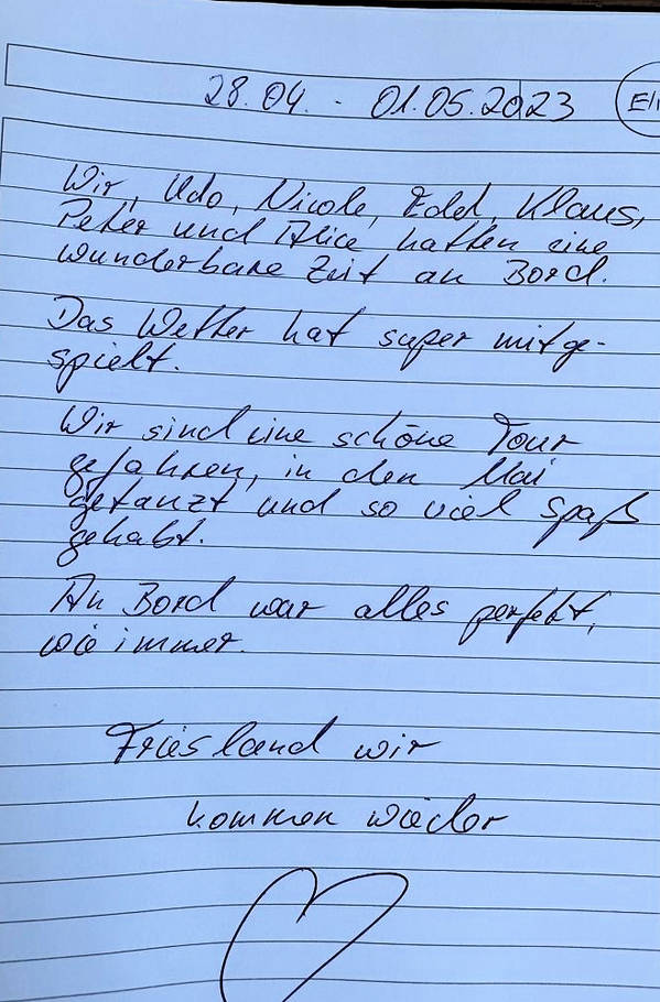 Wir, Udo, Nicole, Edd, Klaus, Peter und Alice hatten eine wunderbare Zeit an Bord.