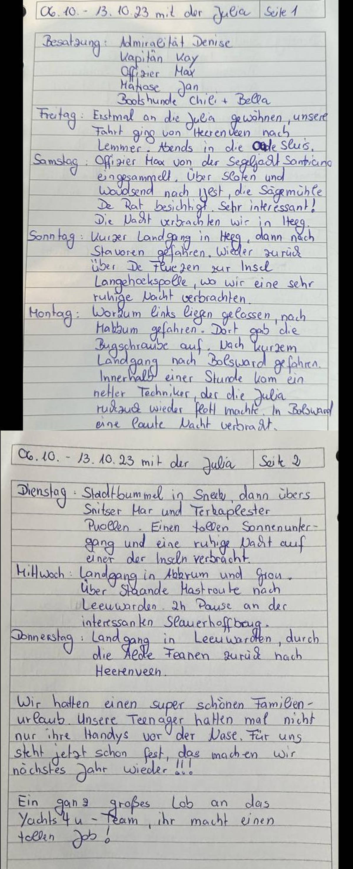Ein ganz großes Lob an das -Yachts4U Team Ihr macht einen tollen Job.