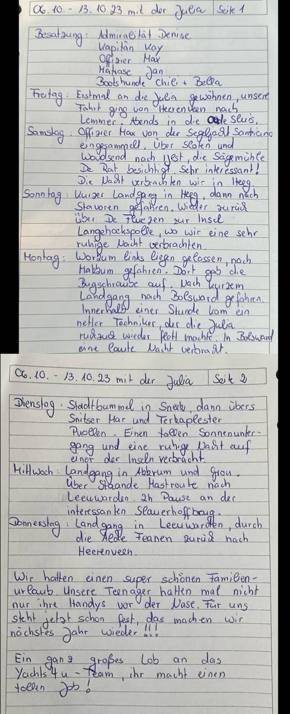 Lesen Sie einen weiteren Bewertung über einen Bootsurlaub mit dem Boot Julia.