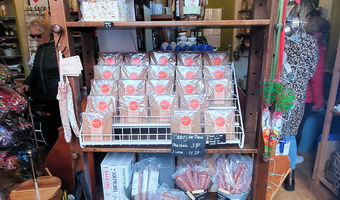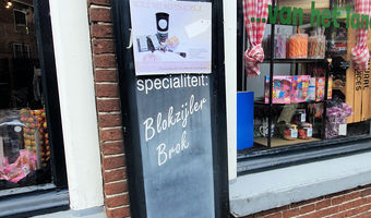 Eine Delikatesse, die zu Blokzijl gehört, ist der "Blokzijler Brok", ein köstlicher Kuchen, den Sie unbedingt probiert haben müssen, wenn Sie schon einmal dort waren. Natürlich haben wir ihn auch in dem Selbstbedienungsladen neben der Brauerei in der Brouwerstraat bekommen. Ein hübscher kleiner Laden, in dem man sich wie in alten Zeiten fühlt und jeder in Versuchung kommt, etwas zu kaufen.