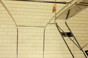 Der Edelstahlrahmen für das Zelt ist inzwischen fertig und wurde vor kurzem auf dem Boot montiert. Nun beginnt der Lieferant mit der Herstellung einer Form.