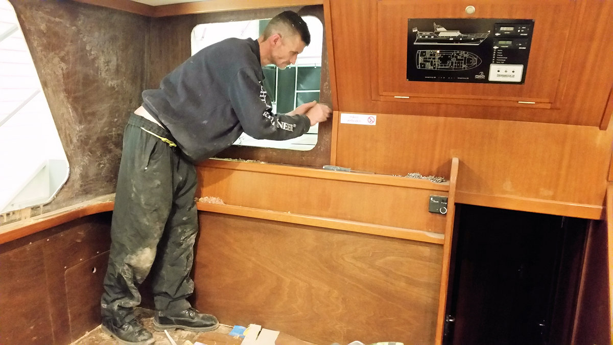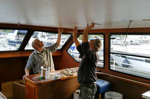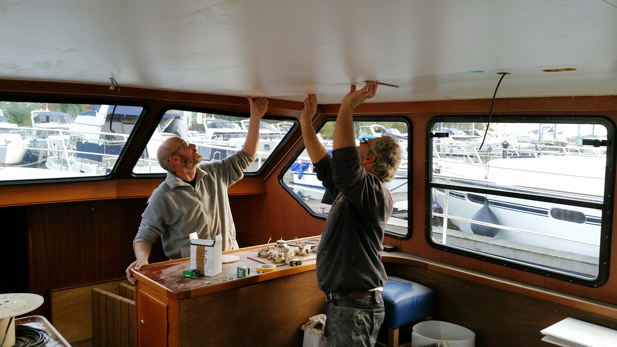 Die Yacht Linda wird in diesem Winter im Wohnbereich neu gestaltet bzw. eingerichtet. Direkt am Ende der Saison wurde bereits der Anfang gemacht und eine neue Deckenverkleidung montiert ferner wurden neue Beleuchtungskörper eingesetzt.