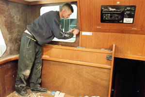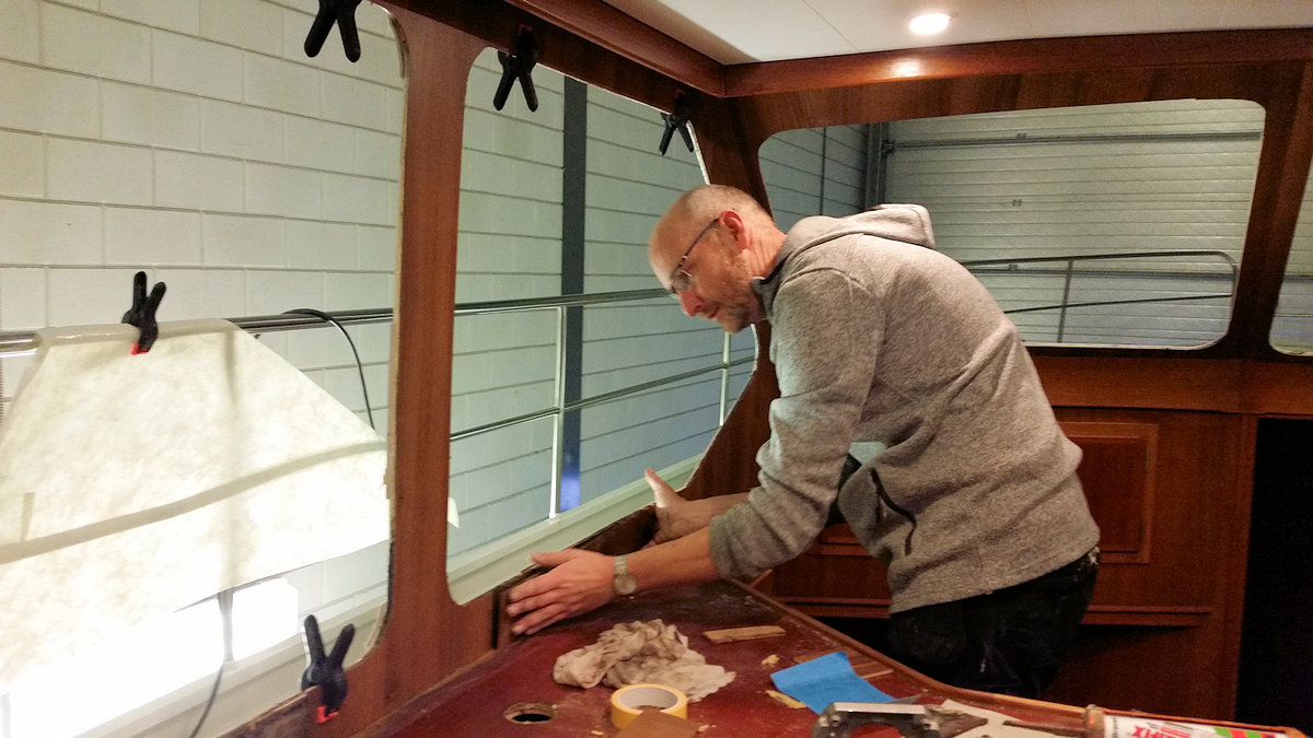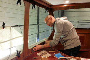 Kurz vor Weihnachten wurde das Schiff in die Arbeitshalle gefahren. Zwischen Weihnachten und dem Jahreswechsel wurden weitere Arbeiten im Salon ausgeführt. Zur Zeit sind fast alle geplanten Arbeiten –bis auf Kleinigkeiten- abgeschlossen.