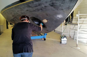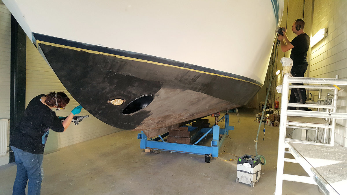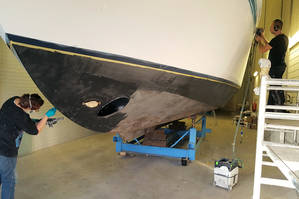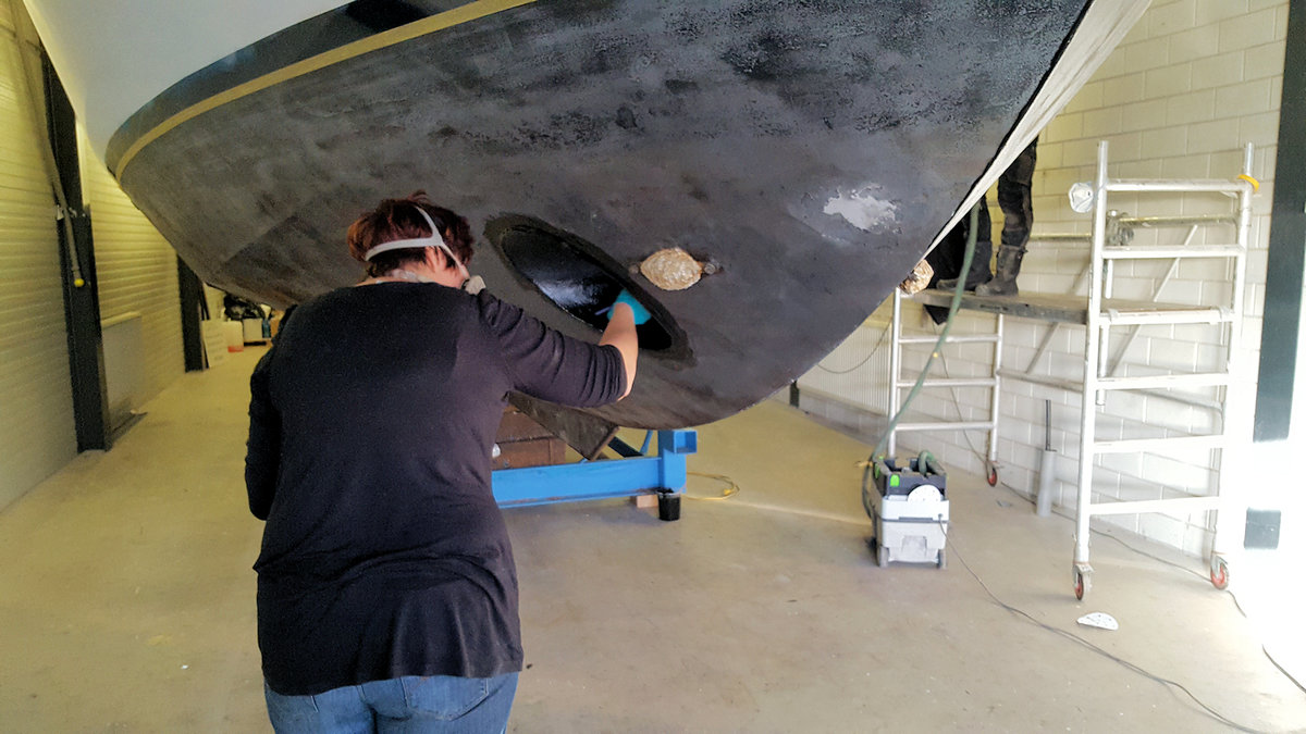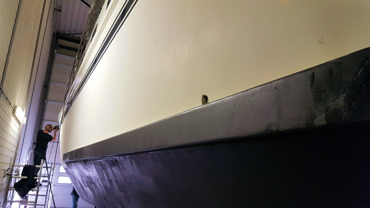 In dieser 1.Woche des neuen Jahres haben wir mit den Lackierungsarbeiten begonnen. Das betrifft das komplette Schiff von den Aufbauten bis zum Unterwasserschiff .