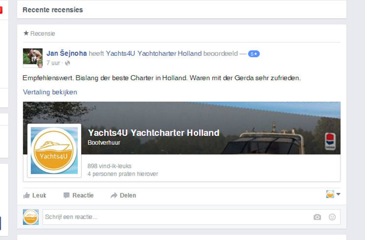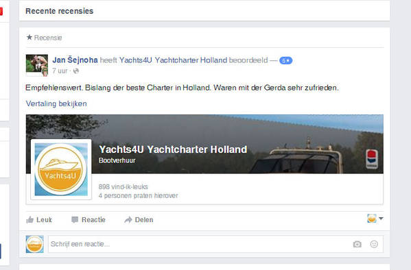 Ein Kundenbericht über die Yacht Gerda auf Facebook
