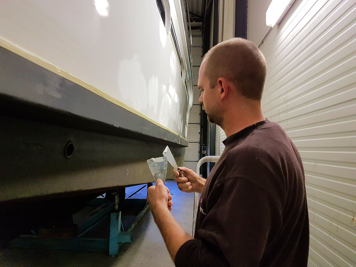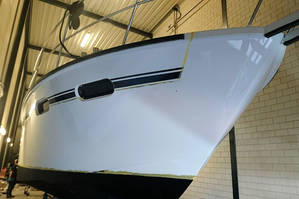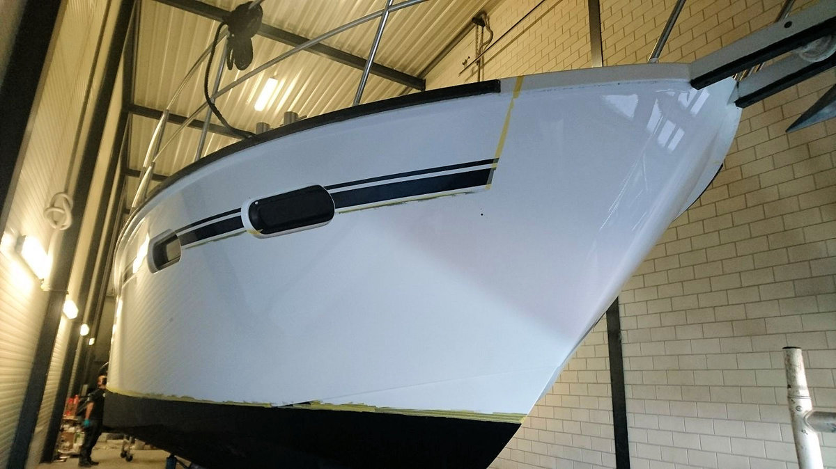 Momentan wird sowohl an der Vesta als auch an der Myrna gearbeitet. Die Myrna befindet sich bereits in der Halle und wird lackiert, während die Vesta noch im Wasser ist.