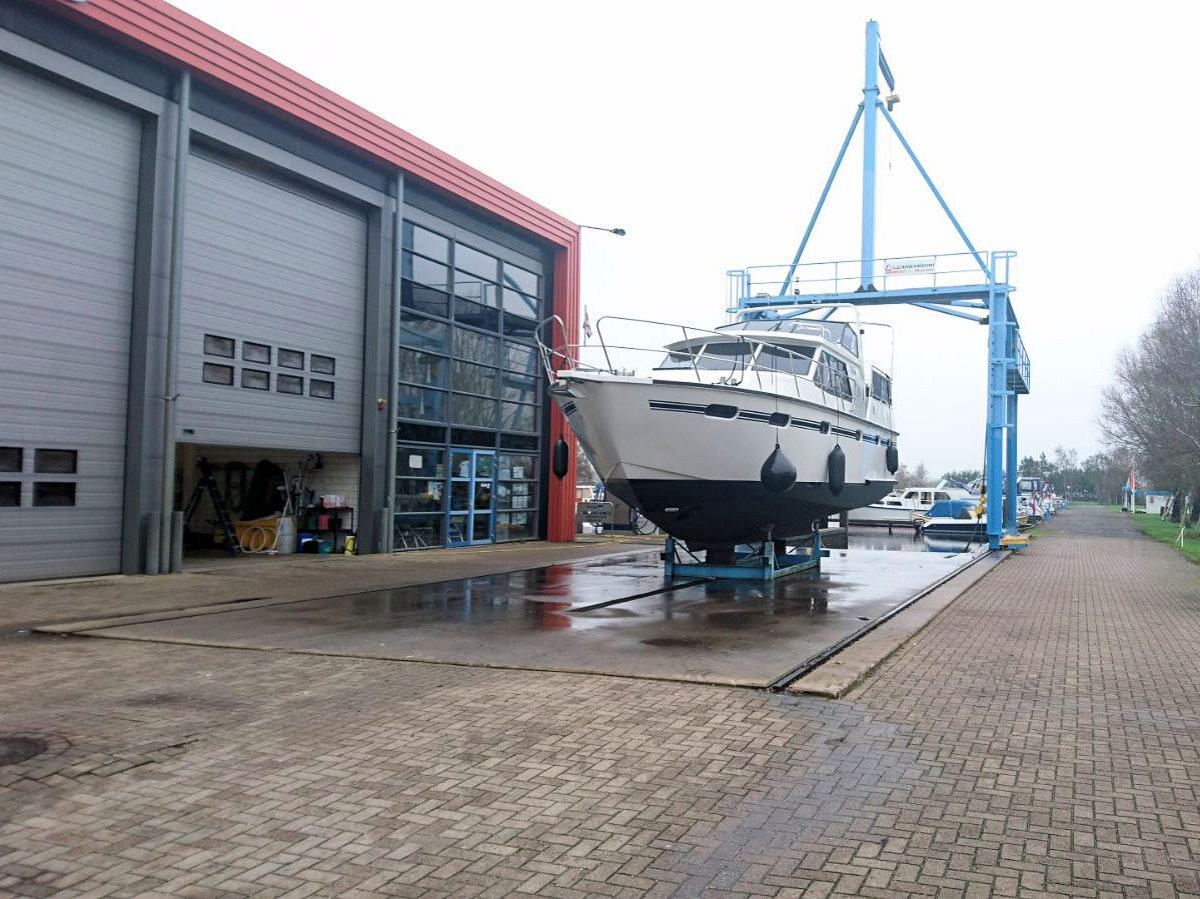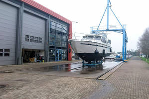 Es wurden bereits einige Yachten (darunter die Novia, Carla, Lilian, Reina, Elisa, Lucia und Julia) vom Wasser aus in die Halle und nach der Wartung wieder zurück zu ihrem Liegeplatz gebracht.