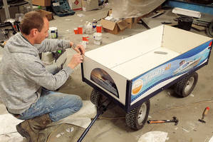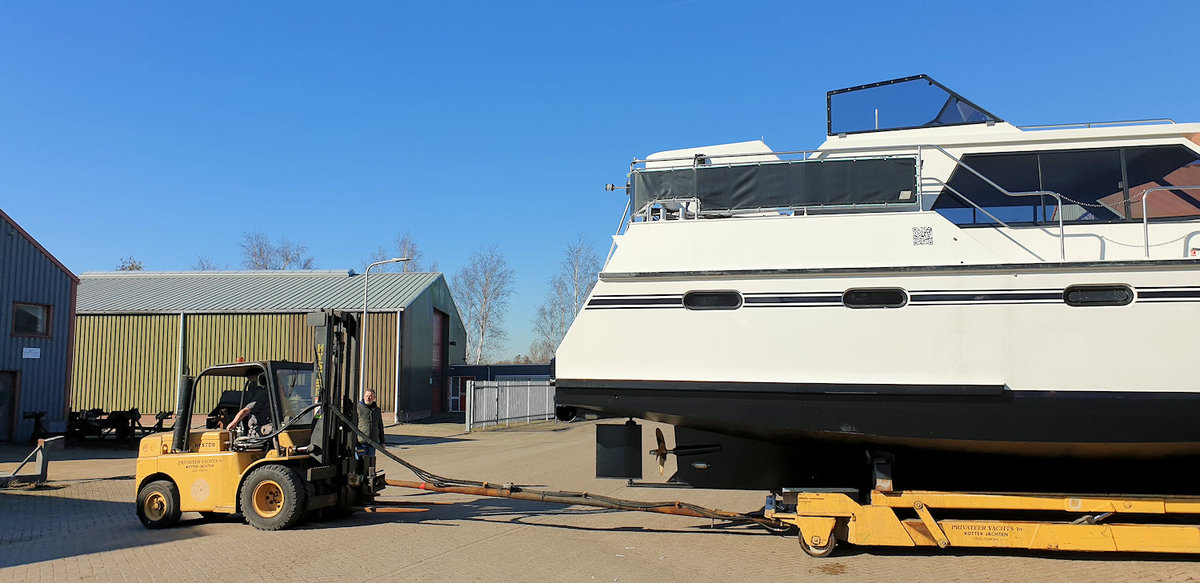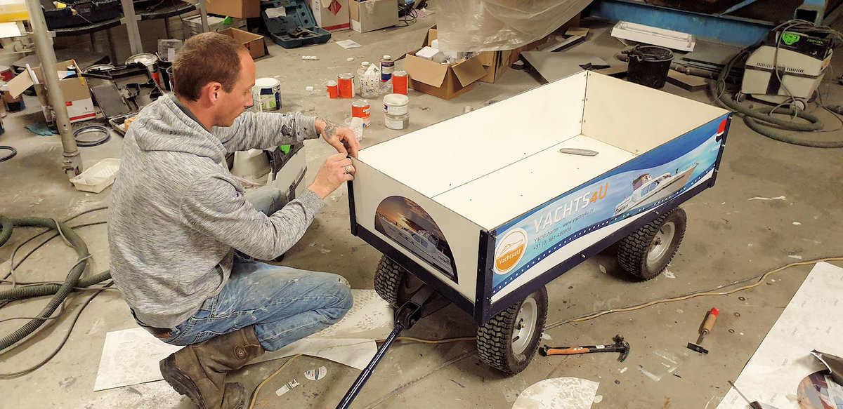 Alle Yachten wurden während der letzten Monate in der Werkhalle lackiert. Momentan warten wir noch die kleinen Wagen, mit denen unsere Gäste vor der Abfahrt und - nach der Rückkehr - ihre Sachen vom Auto zu den Yachten und andersherum bringen können.