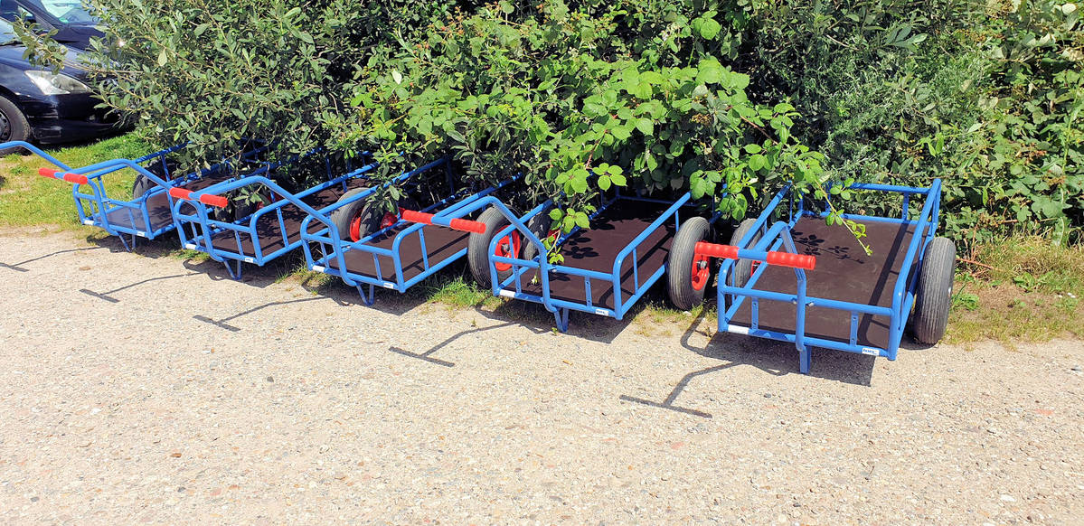Die Mieter unserer Boote, bzw. unsere Gäste, benutzen seit Jahren einen oder auch mehrere dieser Wagen, um ihr Gepäck vom Auto zu dem von ihnen gemieteten Boot und wieder zurück zu bringen.