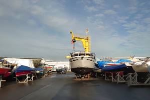 Die Fotos zu diesem Beitrag vermitteln einen Eindruck von den Arbeiten an der Gerda. Bei einigen anderen Booten vermitteln sie einen Eindruck von Kranarbeit, Transport zum Hal und Lackierung.
