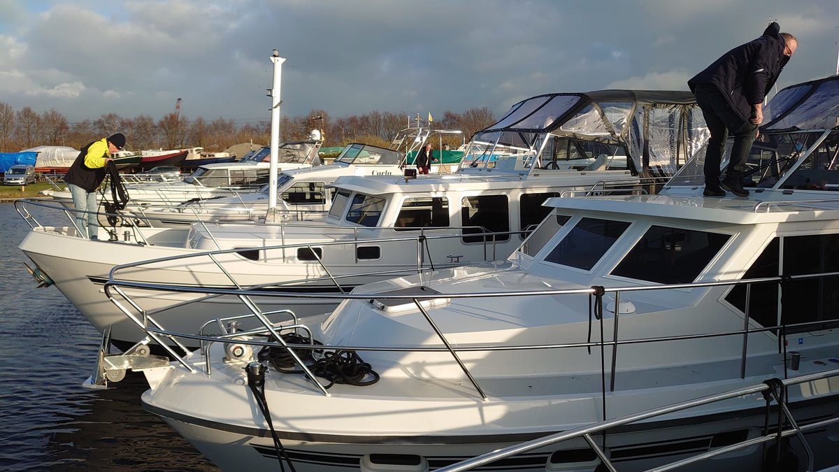 Tatsächlich waren 3 Boote gleichzeitig unterwegs und insgesamt 6 mussten den neuen Heimathafen ansteuern. Ein weiteres Boot muss zum Hafen in Heerenveen gefahren werden. Dieser Umzug ist für morgen geplant, wenn eine weitere Brücke geöffnet wird.