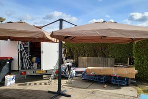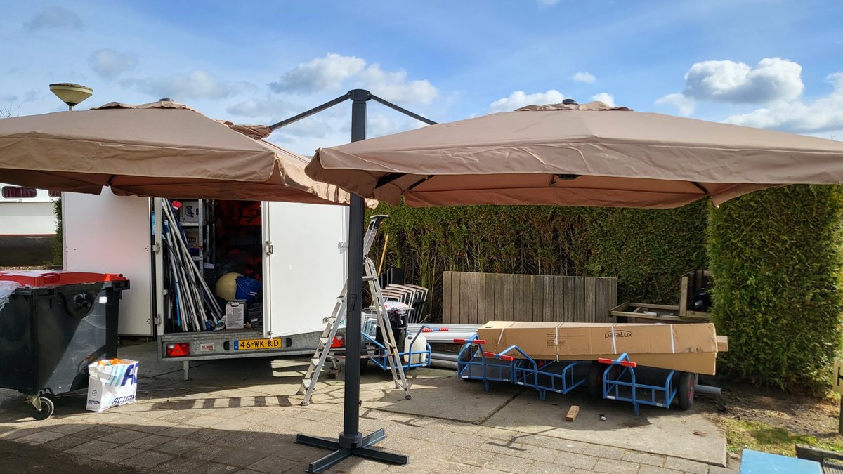 Es wurde auch Platz für 2 Sitzplätze mit Sonnenschirmen geschaffen, wo die Leute warten können, wenn sie schon da sind und wir mit den Vorbereitungen noch nicht fertig sind. Sie kennen das vielleicht von einem früheren Hotelurlaub: Das Hotel kündigt an, dass ein Zimmer ab, zum Beispiel, 16:00 Uhr verfügbar ist, aber wir sind schon um 14:00 Uhr da sind, weil "wer weiß, vielleicht ist das Zimmer schon frei ist" .....