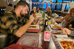 Es war ein gemütlicher Abend, bei dem sie das köstliche Essen mit einigen Getränken genossen haben.