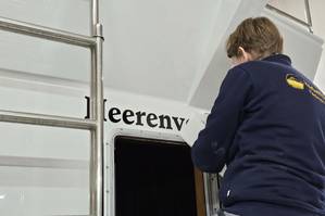 Heute wird die jährliche Wartung des Bootes Julia abgeschlossen. Das Boot wurde komplett lackiert, und die letzte Handlung, bevor das Boot "die Halle verließ", war das Anbringen von "Heerenveen" auf der Rückseite des Bootes. Damit ist die Julia das erste Boot, auf dem der Name unserer Geschäftsadresse deutlich sichtbar ist, unserer Zweigstelle in der Stadt, die nach den 'Herren des Moores' benannt ist, die um 1550 mit der Moorkultivierung begonnen haben.
